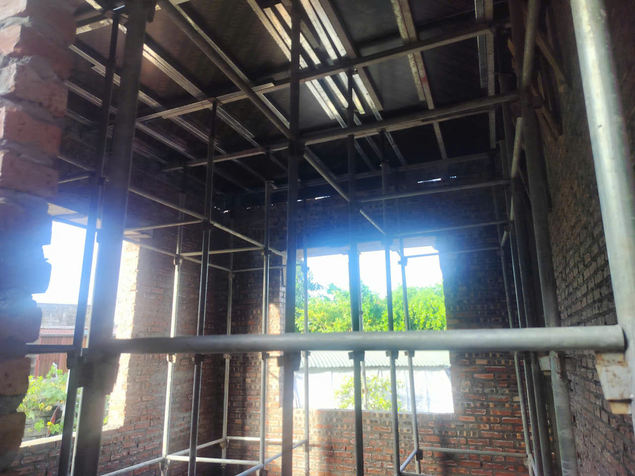Để chuẩn bị lên tầng 2, công tác lắp dựng hệ khung giáo được ưu tiên hàng đầu. Xây dựng trọn gói DGROUP sử dụng hệ giáo thép chắc chắn, chân giáo được kê đệm vững chãi trên nền bê tông tầng 1. Hệ thống giàn giáo không chỉ phục vụ thi công. Mà còn phải đảm bảo an toàn tuyệt đối cho công nhân làm việc ở độ cao, không xảy ra hiện tượng rung lắc hay mất ổn định kết cấu giáo chống.