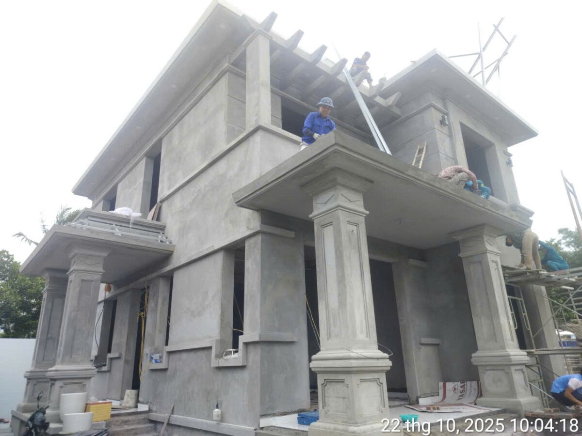 Trong lĩnh vực xây dựng dân dụng, việc hiện thực hóa một bản vẽ thiết kế thành một công trình bền vững đòi hỏi một quy trình thi công nghiêm ngặt và sự kiểm soát chặt chẽ về kỹ thuật. Xây dựng trọn gói DGROUP tự hào giới thiệu dự án thi công trọn gói nhà mái Nhật 2 tầng cho gia đình bác Sơn tại Bình Lục, Hà Nam. Với tổng diện tích 265m2, công trình không chỉ yêu cầu tính thẩm mỹ cao. Mà còn đặt ra những tiêu chuẩn khắt khe về kết cấu và hạ tầng kỹ thuật.