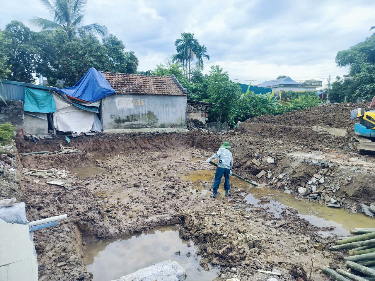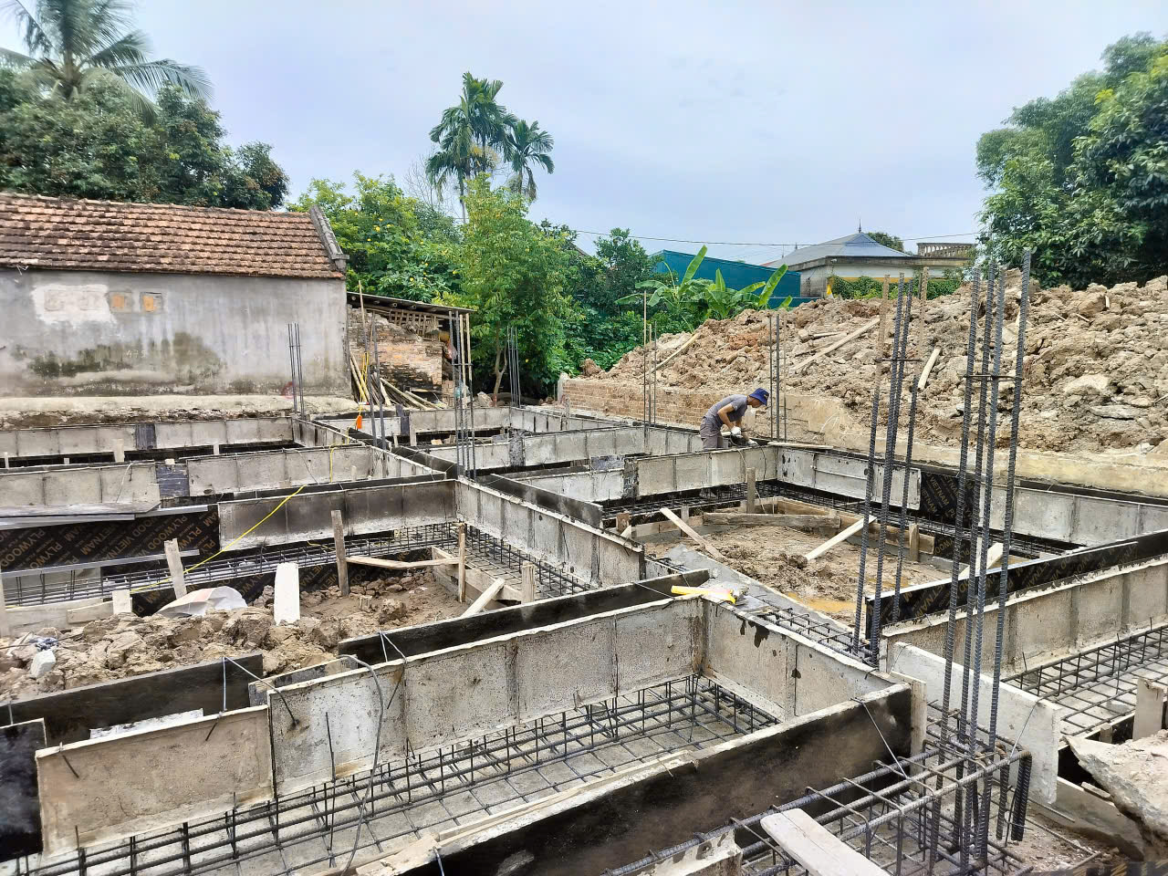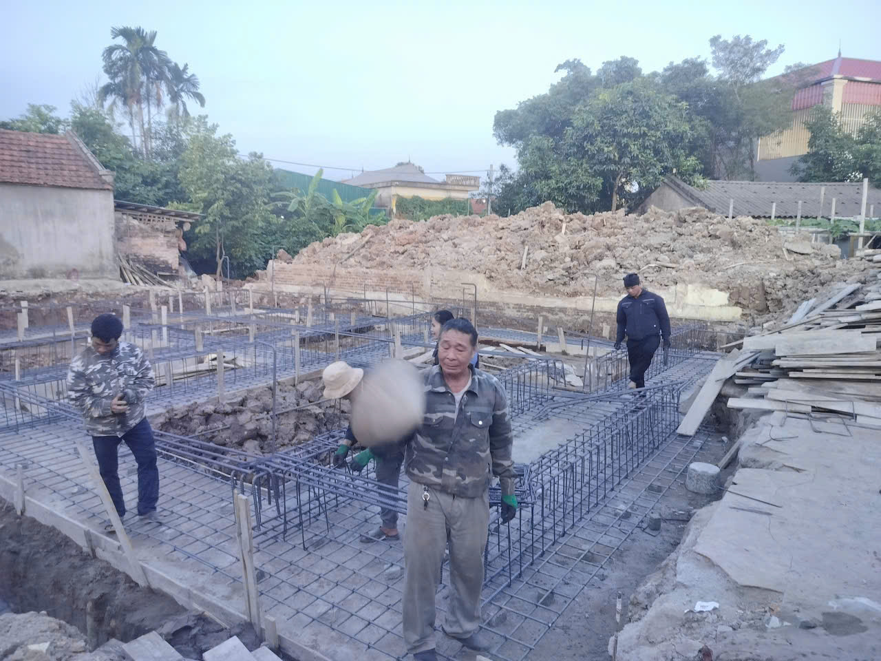 Dựa trên hồ sơ thiết kế, hệ thống máy xúc công suất lớn được huy động để xử lý phần đất nền, đào hố móng theo đúng cốt cao độ. Do đặc thù địa chất tại Bình Lục, Hà Nam thường là nền đất bồi, phương án gia cố nền bằng hệ thống cọc tre mật độ cao đã được tập kết. Những cây cọc tre già, thẳng. Đảm bảo tiêu chuẩn được đóng sâu xuống nền đất nhằm tăng cường khả năng chịu tải. Đảm bảo công trình không bị sụt lún trong quá trình sử dụng lâu dài.