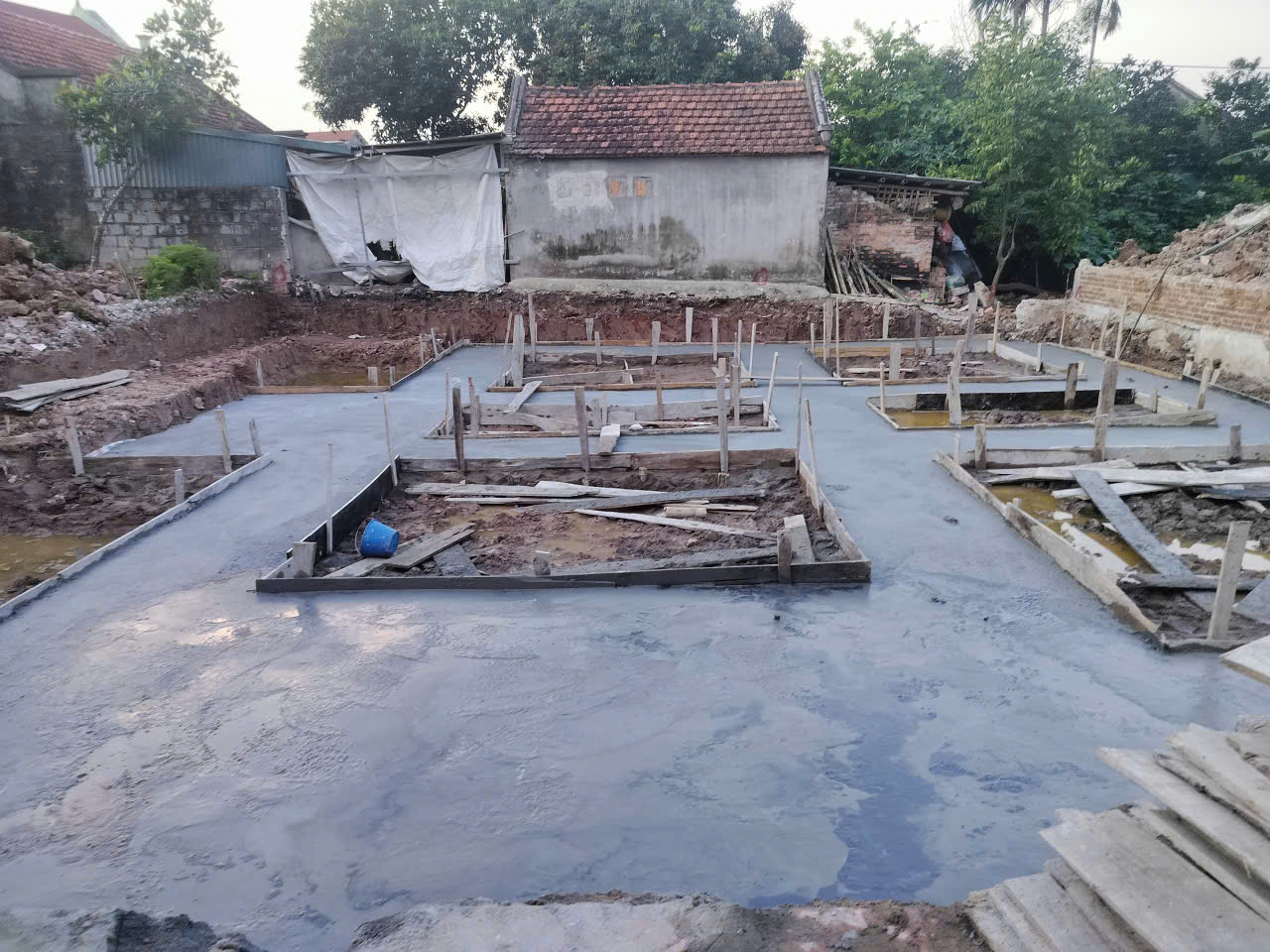Đổ bê tông lót bảo vệ nền móng