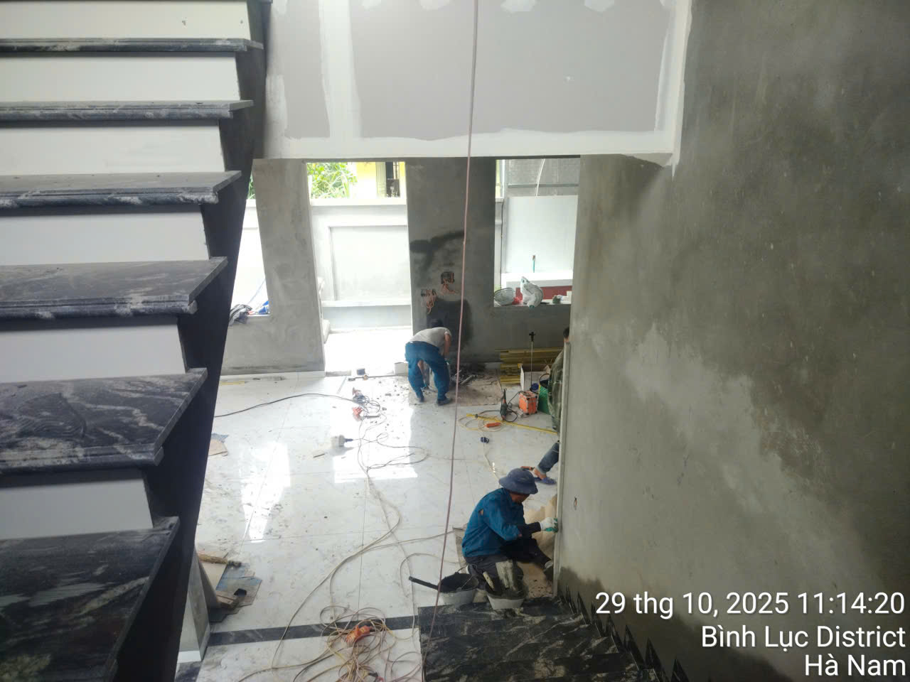 Công tác ốp lát tại nhà bác Sơn được thực hiện với sự tỉ mỉ tối đa. Trước khi lát sàn, đội ngũ kỹ sư kiểm tra lại độ phẳng và cao độ của nền nhà. Gạch hoa được lựa chọn là loại gạch men cao cấp. Đồng nhất về kích thước và màu sắc.